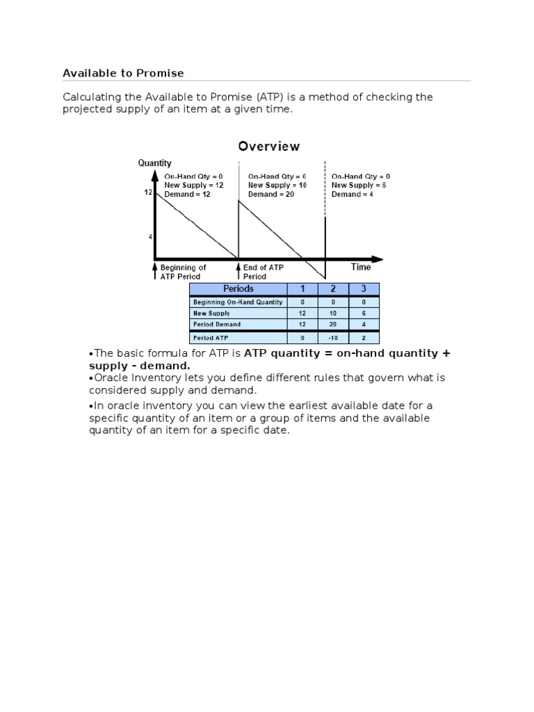 Available To Promise - Solved Calculate The Available To Promise Row In The Foll Chegg Com : Atp (available to promise) may literally mean delivery commitment limit but probably the closest word used in the japanese manufacturing industry is delivery quotations.
