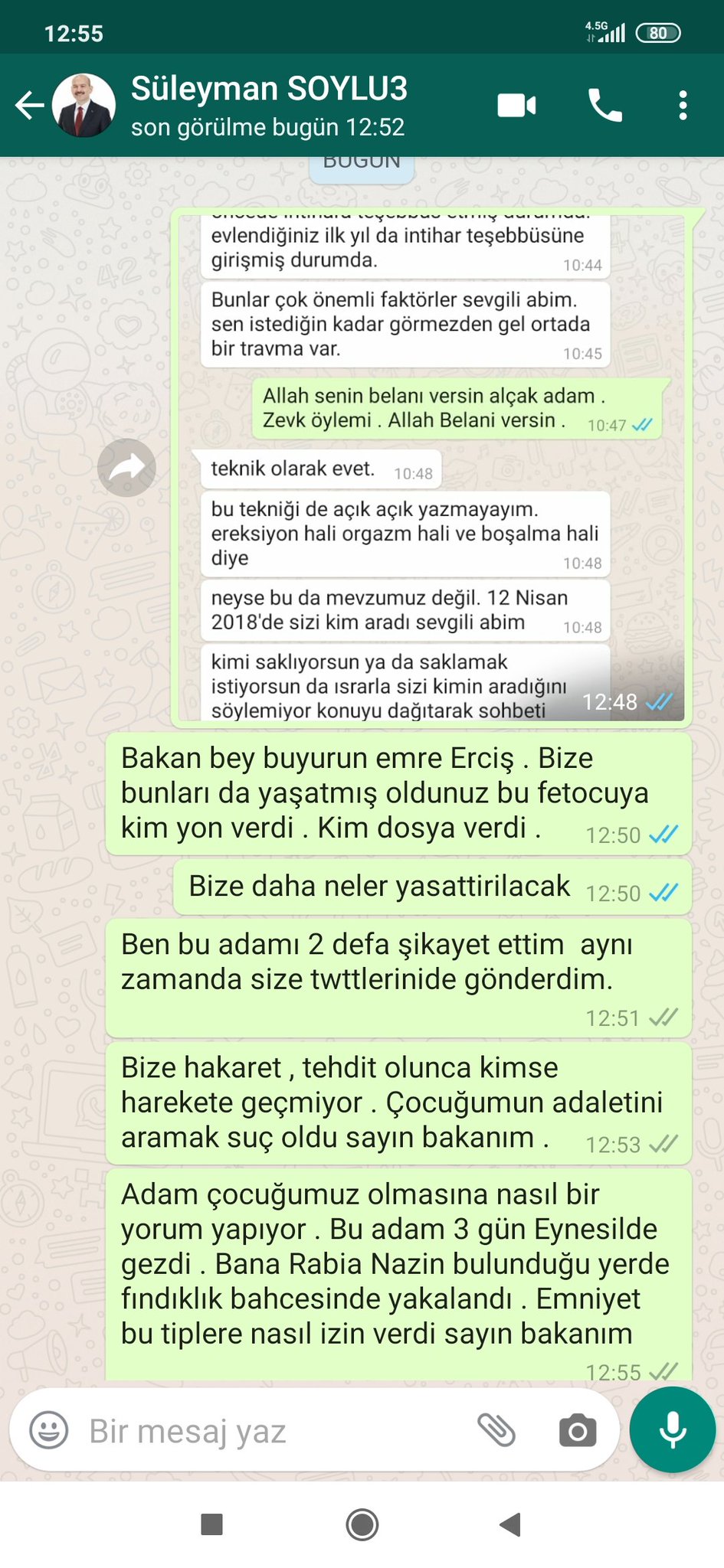 Akp Li Tetikci Emre Ercis Ten Saban Vatan A Igrenc Ifadelerle Tehdit Gelince Baris Atay Dayanamadi Sana Ne Insanlarin Aile Hayatindan Hadsiz from halkweb.com.tr Bunlardan birisi de rabia naz dosyası yüzünden almış olduğum cezanın başka davalardan almış olduğum para cezalarının bozulmasını ve o cezalarında onanmasını sağladı. Rabi̇a naz'in babasini da suçlamişti. Nisan 2016'da 'fetö' soruşturması kapsamında gözaltına alınan erciş, o tarihten sonra sosyal medya üzerinden hükümete yakın paylaşımlar yapmaya başladı. Erciş'in, rabia naz'ın şüpheli ölümüne ilişkin şaban vatan'a mesaj yoluyla gönderdiği sorularda iğrenç ifadeler kullandığı ortaya çıktı. Kamuoyu bunun faillerinin korunduğuna ikna oldu. Başımda uğraştığım bir yığın sorun var. Rabia naz'ın babasından fetö tepkisi. Yaşanan olay sonucu erciş, ayağından yaralandı.
